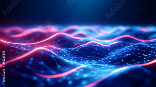 Wall mural : Abstract digital waves with glowing lights and patterns, representing advanced technology and innova