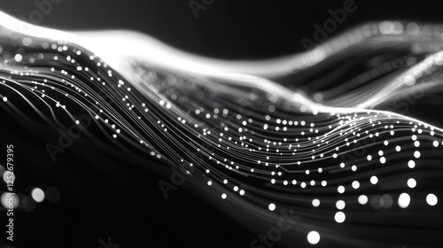 Wall mural : Abstract digital waves: monochromatic flow of data points