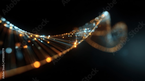 Wall mural abstract dna strand with glowing nodes and connecting lines on a dark background in a blurred style - Wall murals Wall mural abstract dna strand with glowing nodes and connecting lines on a dark background in a blurred style - Wall murals