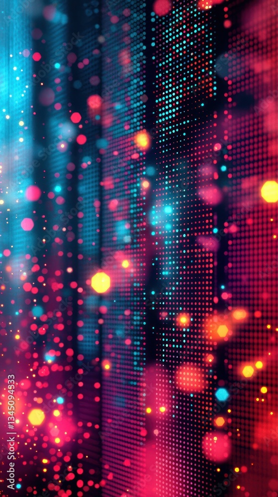 Wall mural abstract dots glow. digital art with bokeh lights and colorful pattern
