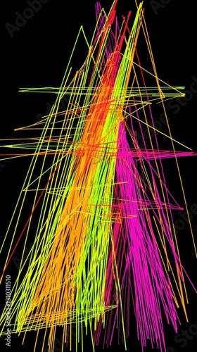 The watermark will not be included on Wall mural.: Abstract dynamic colorful lines form a digital art piece on a black background for creative projects