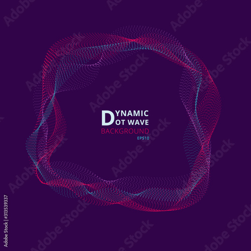 Wall mural abstract dynamic round frame particles waves on purple background.