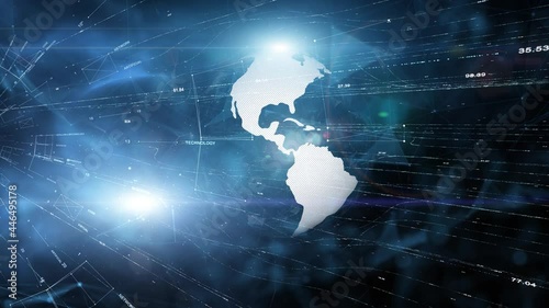 Abstract earth planet network with technology word cloud, sunlight and lights animation - view from sWall mural