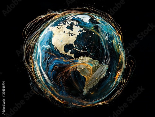 Wall mural abstract earth with a futuristic design showing global connections in motion