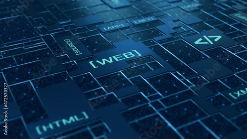 Wall mural abstract electronic circuit with cpu, keywords and icons, web development and web design concept, so - Wall murals Wall mural abstract electronic circuit with cpu, keywords and icons, web development and web design concept, so - Wall murals
