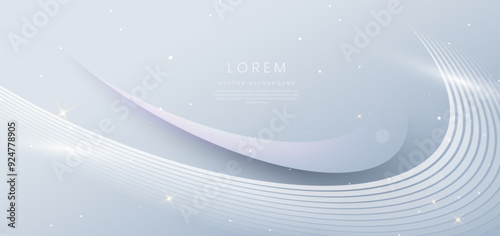 Wall mural abstract elegant grey background with white dynamic wave lines.