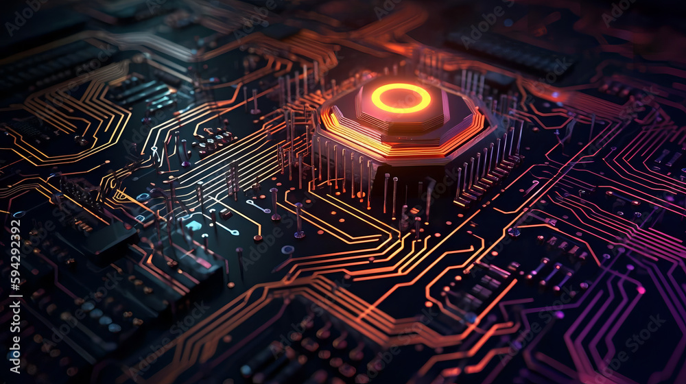 Wall mural : Abstract elements of circuits, technology - generative ai
