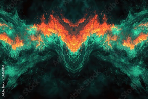 The watermark will not be included on Wall mural.: Abstract emerald flames dancing against obsidian background, digital fractal patterns creating super
