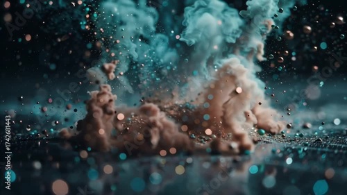 Wall mural : Abstract explosion colorful dust smoke and glitter background