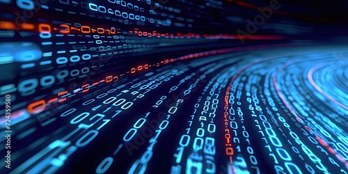 Wall mural abstract fast moving binary computer data. high speed motion blur, technology, machine learning, big