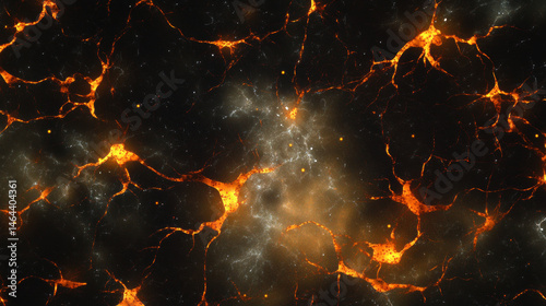 Wall mural abstract fiery volcano lava cracks in glowing orange and black with bright sparks and fiery patterns