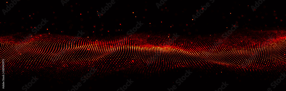 Wall mural abstract fire background with a dynamic wave. wave of particles. futuristic technology. fire flying