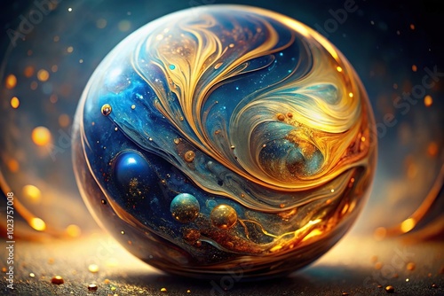 Wall mural : Abstract fisheye cosmic marble pattern with golden accents