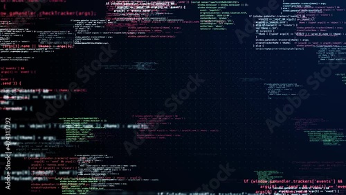 Wall mural : Abstract flight through moving computer code loop background 3d animation - lines of written code, fu