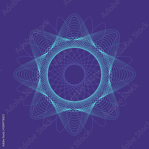 The watermark will not be included on Wall mural.: Abstract flower fractal circles background for global data concept, blue tones sphere lines wirefram