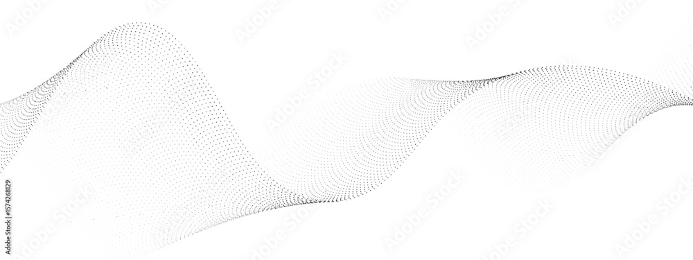 Abstract flowing dots particles wave curved lines on transparent background - black halftone gradientWall mural