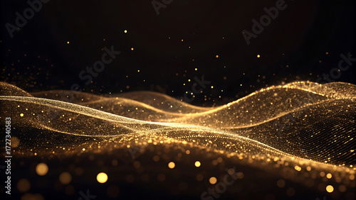 Wall mural abstract flowing golden waves of light particles and bokeh on a dark background