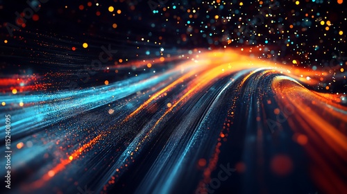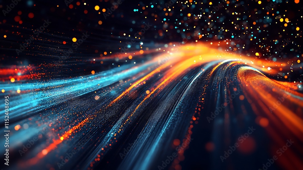 Wall mural abstract flowing lines enhanced by radiant sparkling colorful particle effects design
