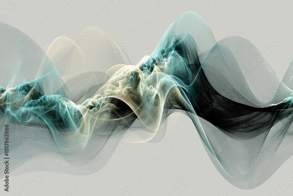 Wall mural abstract flowing lines in blue, gold and black against a neutral background creating an ethereal and - Wall murals Wall mural abstract flowing lines in blue, gold and black against a neutral background creating an ethereal and - Wall murals