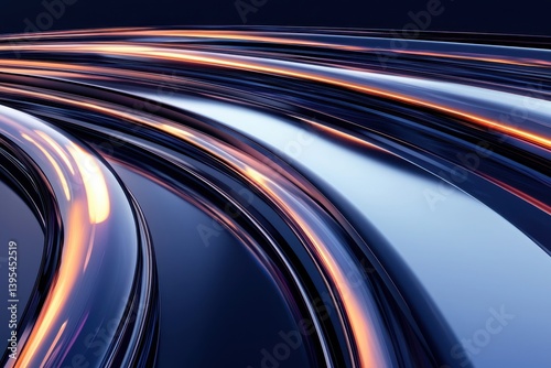 Wall mural : Abstract flowing lines with dynamic light trails and sleek surfaces