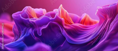 The watermark will not be included on Wall mural.: Abstract flowing purple and orange gradient waves, smooth and dynamic 3d render concept of fluidity,
