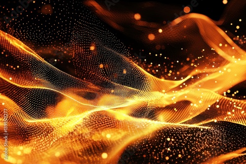 The watermark will not be included on Wall mural.: Abstract flowing waves of golden light and particles in motion
