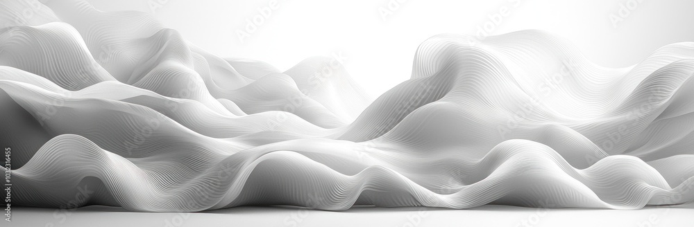 The watermark will not be included on Wall mural.: Abstract flowing white waves with a smooth, textured surface creating a fluid, dynamic motion effect