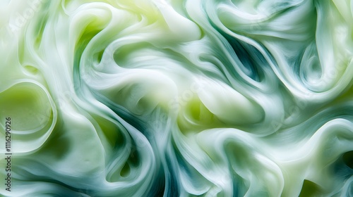 Abstract fluid background with swirling patterns of green and white tones for creative design and arWall mural