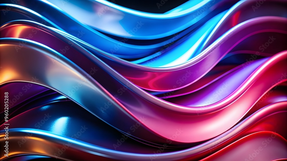 Wall mural abstract fluid iridescent holographic curved wave in motion colorful gradient design on a abstract m - Wall murals Wall mural abstract fluid iridescent holographic curved wave in motion colorful gradient design on a abstract m - Wall murals