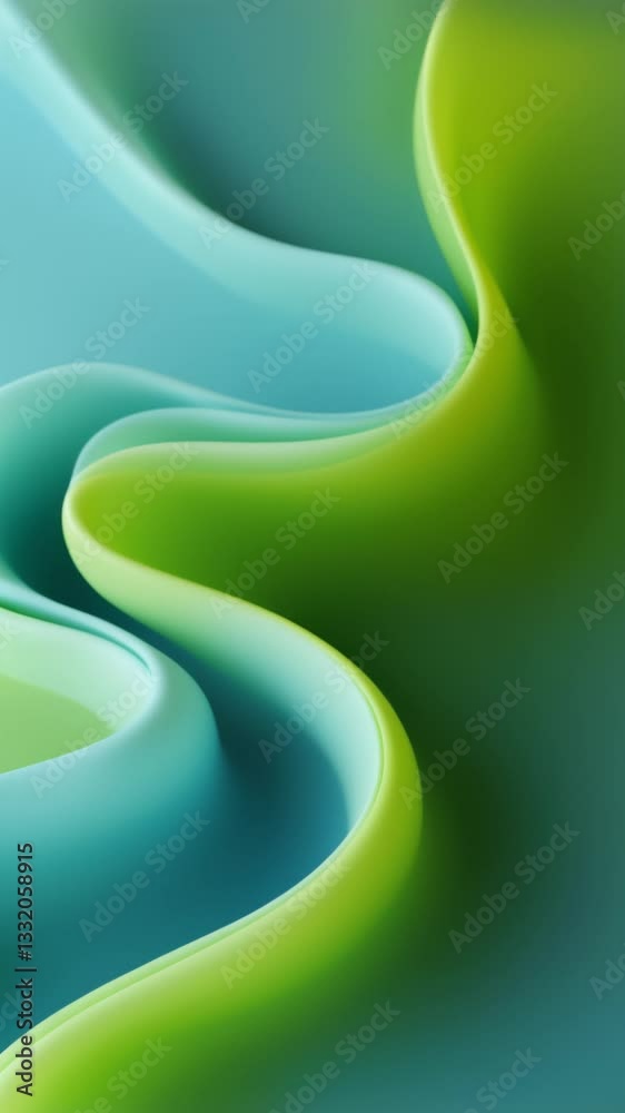 The watermark will not be included on Wall mural.: Abstract fluid shapes in smooth gradients of green and blue hues creating a calming and serene backg