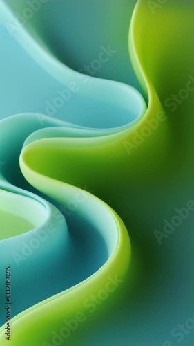 Wall mural : Abstract fluid shapes in smooth gradients of green and blue hues creating a calming and serene backg