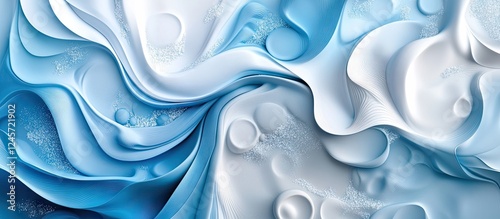 The watermark will not be included on Wall mural.: Abstract fluid texture in shades of blue and white with smooth curves and soft waves creating a sere