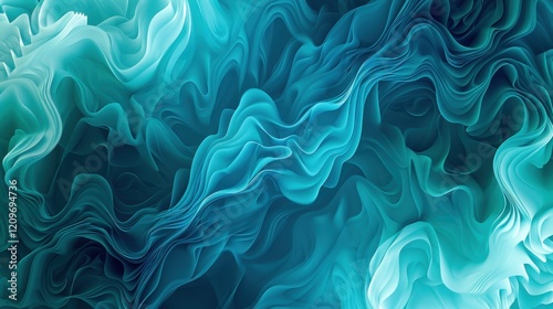 Abstract fluid waves in turquoise and teal colors with soft curves and smooth texture ideal for backWall mural