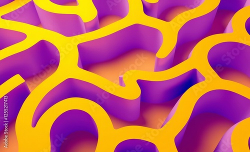 Wall mural : Abstract folded paper effect bright colorful yellow background maze made of paper 3d rendering 3d wa