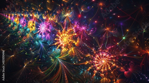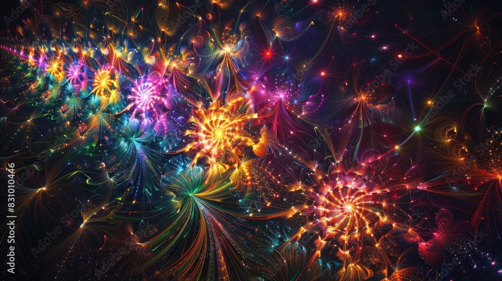 Wall mural : Abstract fractal background with colorful fireworks and multicolor texture for holiday events