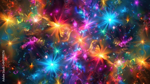 Wall mural : Abstract fractal background with colorful fireworks and multicolor texture for holiday events