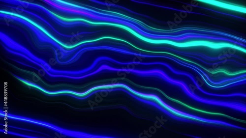 Wall mural abstract fractal neon background of bright lines. glowing stripes. 3d animation of a seamless loop