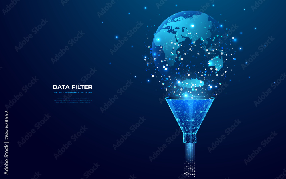 Wall mural abstract funnel with data flow and globe earth on dark blue technology background. global network me - Wall murals Wall mural abstract funnel with data flow and globe earth on dark blue technology background. global network me - Wall murals