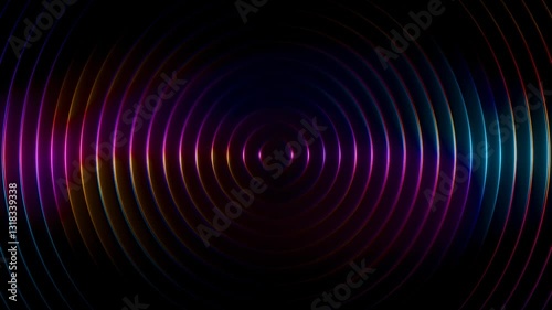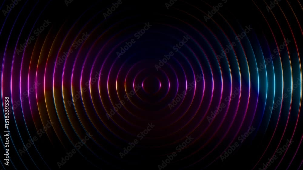 Wall mural : Abstract futuristic background animation of dark 3d rings wave motion with glowing colorful rainbow