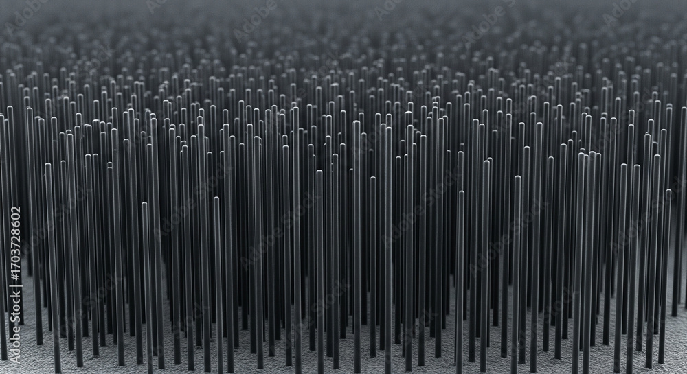 Wall mural : Abstract futuristic background showing a dense array of vertical black cylinders representing nanote