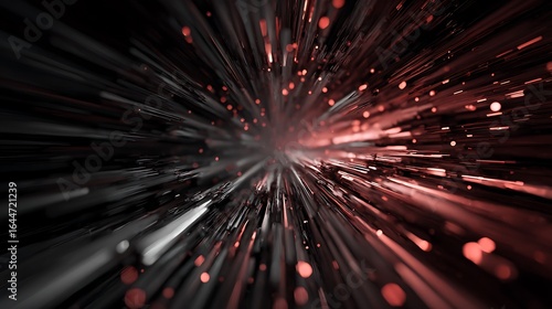 Wall mural abstract futuristic background with light motion and speed effect, dark space tunnel with burst of r