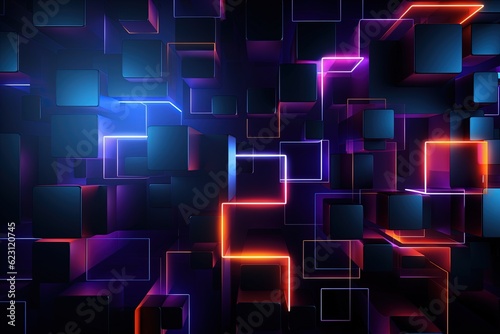 Wall mural abstract futuristic background with pink blue glowing neon moving high speed wave lines and bokeh li