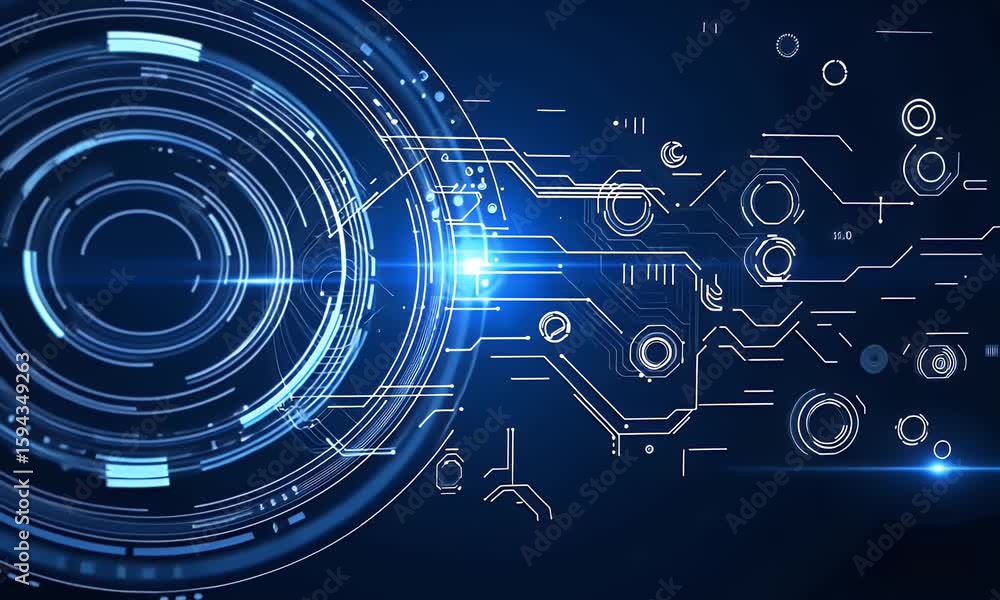 Wall mural abstract futuristic blue background with glowing digital technology and circuit board elements in th - Wall murals Wall mural abstract futuristic blue background with glowing digital technology and circuit board elements in th - Wall murals