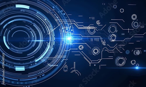 Wall mural abstract futuristic blue background with glowing digital technology and circuit board elements in th