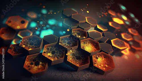 Wall mural : Abstract futuristic colorful background with hexagons, generative ai