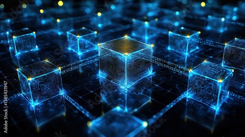 Wall mural : Abstract futuristic cubes glow with interconnected digital networks