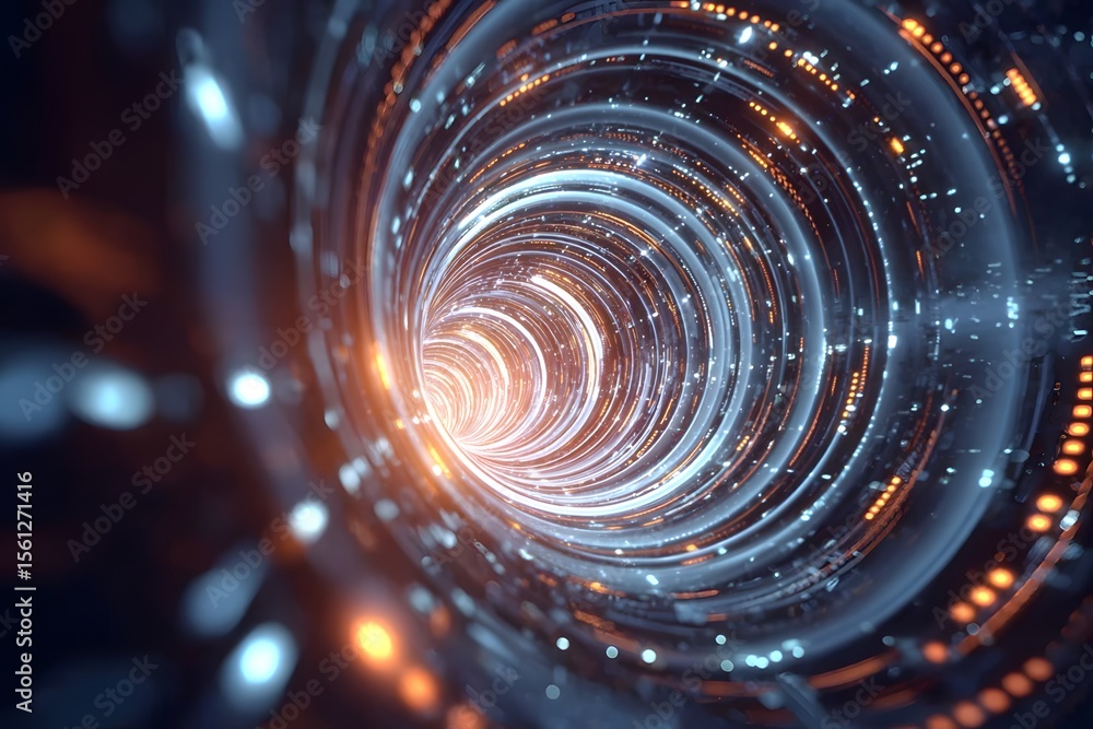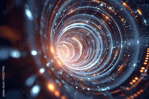 Wall mural abstract futuristic digital background with a glowing spiral tunnel, representing data transfer and
