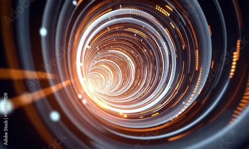 Wall mural abstract futuristic digital background with a glowing spiral tunnel, representing data transfer and