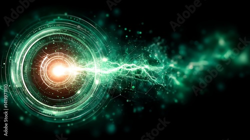 The watermark will not be included on Wall mural.: Abstract futuristic energy core with glowing plasma beam and complex technological circuitry -