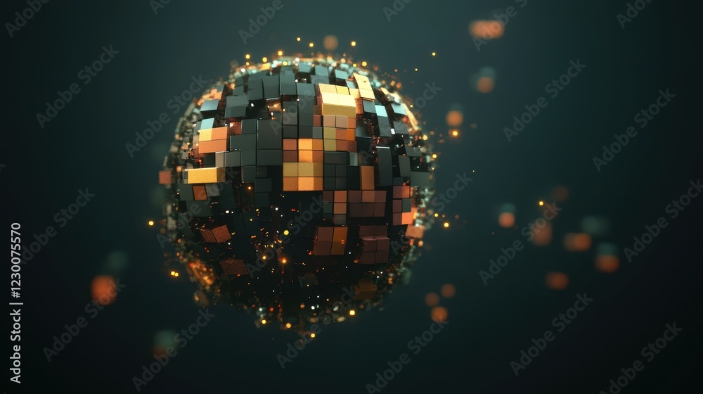 The watermark will not be included on Wall mural.: Abstract futuristic globe constructed from blockchain cubes and nodes